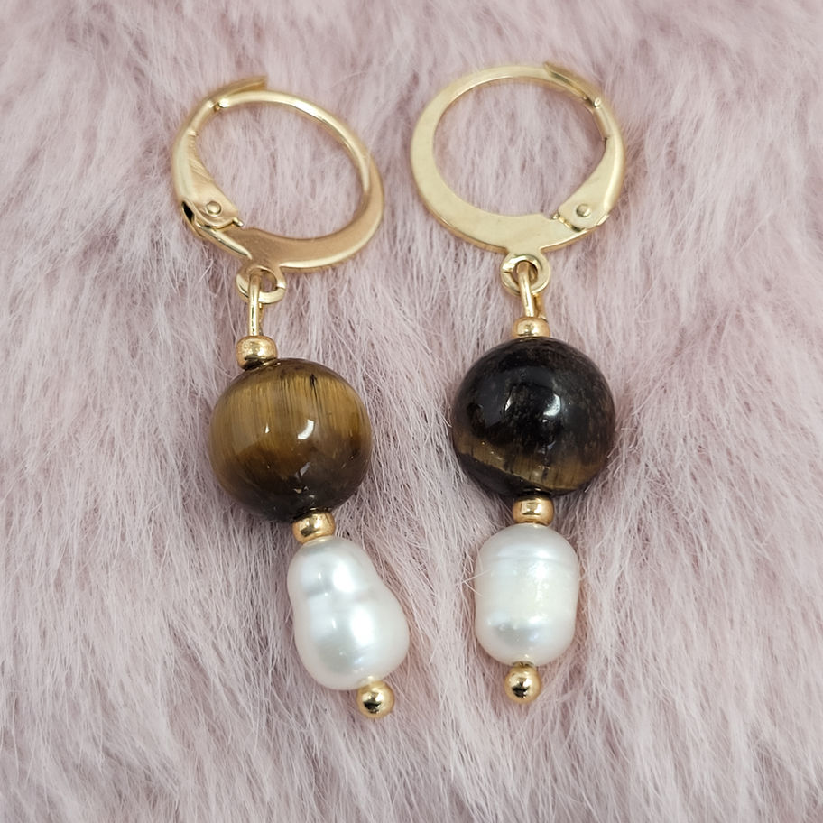 Assemblées à la main, elles marient la délicatesse de la perle d’eau douce à la profondeur de l’œil de tigre, créant un équilibre subtil entre douceur et caractère.